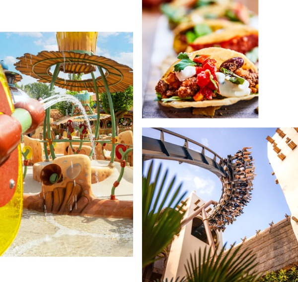 | ... sechs phantastischen Themenwelten: Die Tapas auf dem Marktplatz in Mexico? Mit der Black Mamba durch den Dschungel sausen? Und dann nach Fantasy, wo du dir bei Wavy Battle ein spritziges Duell mit dem Nachwuchs lieferst! |